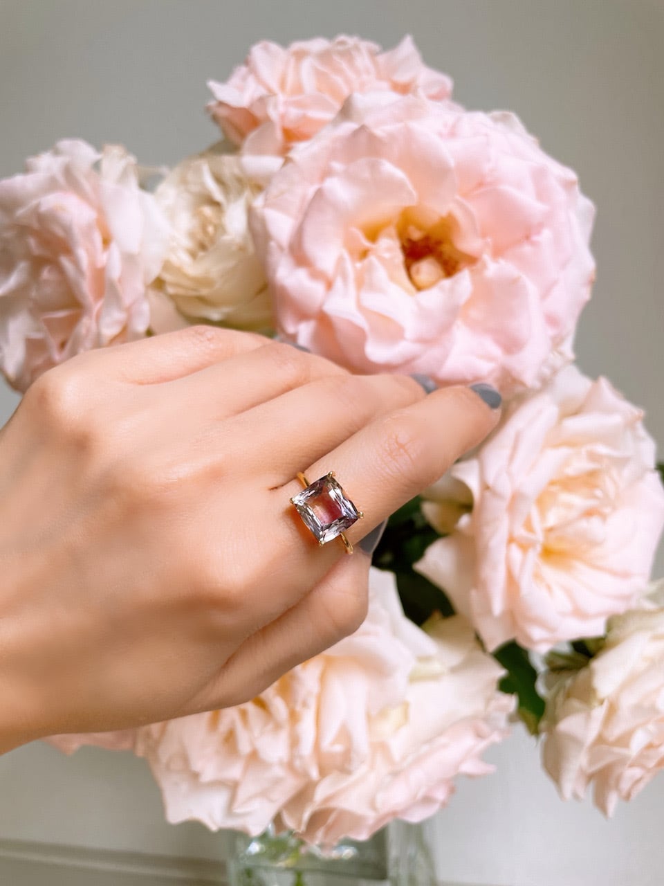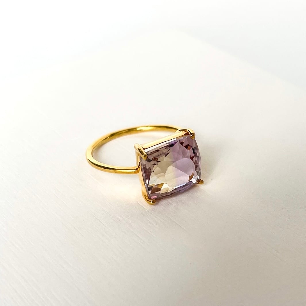 澄んだバイカラーが美しいアメトリンの魅力を最大限に生かした、ファセットカットのリングです。