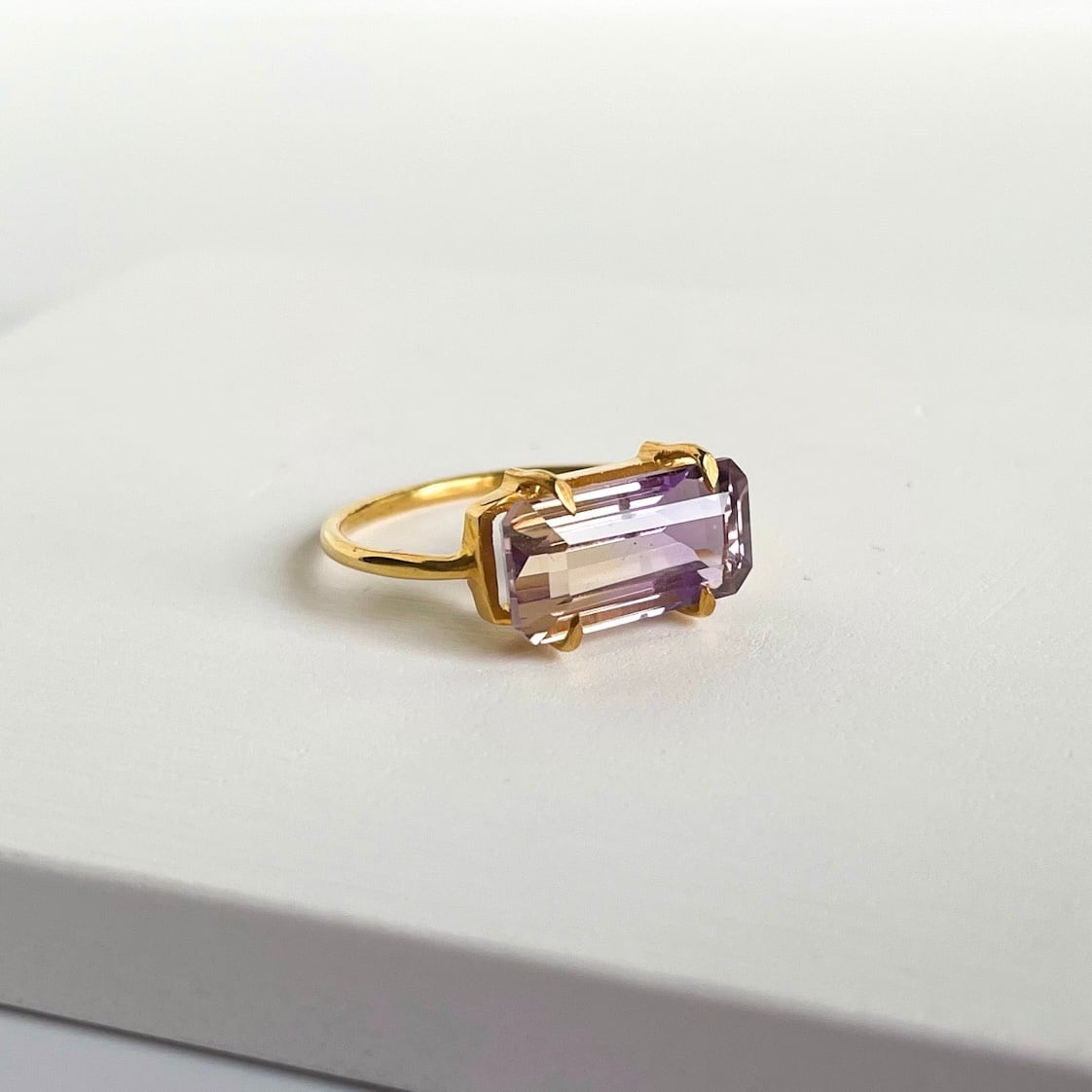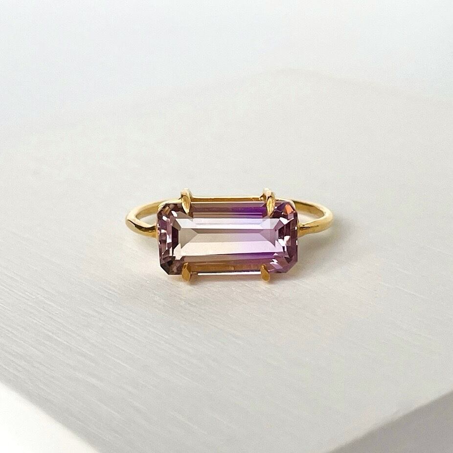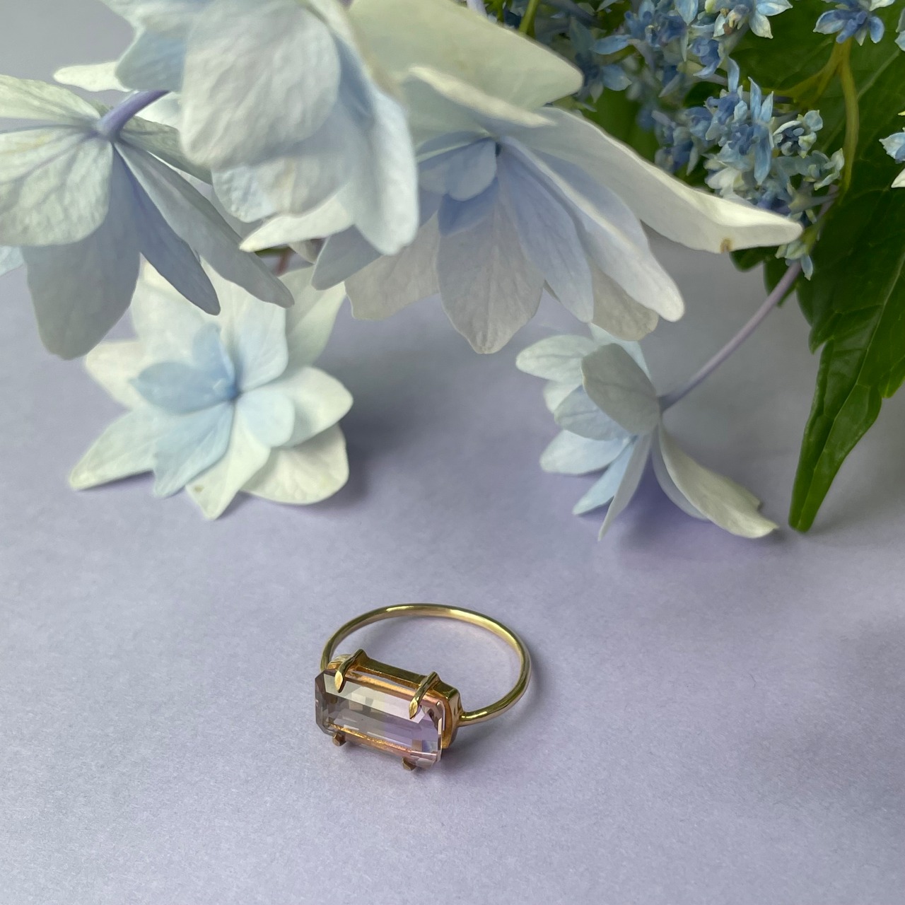 澄んだバイカラーが美しいアメトリンの魅力を最大限に生かした、ファセットカットのリングです。