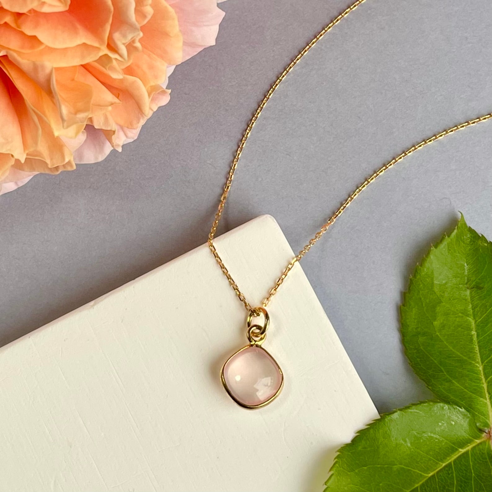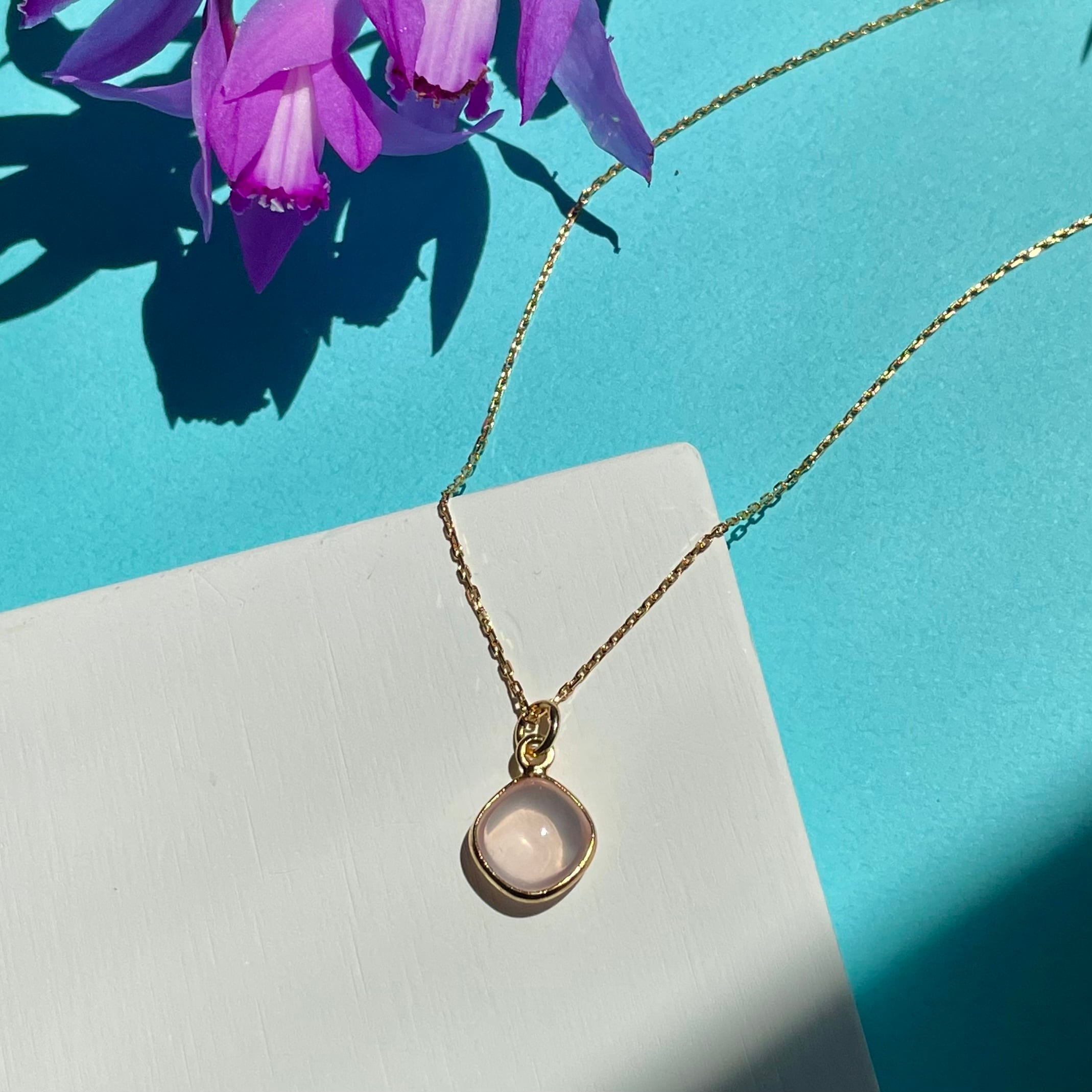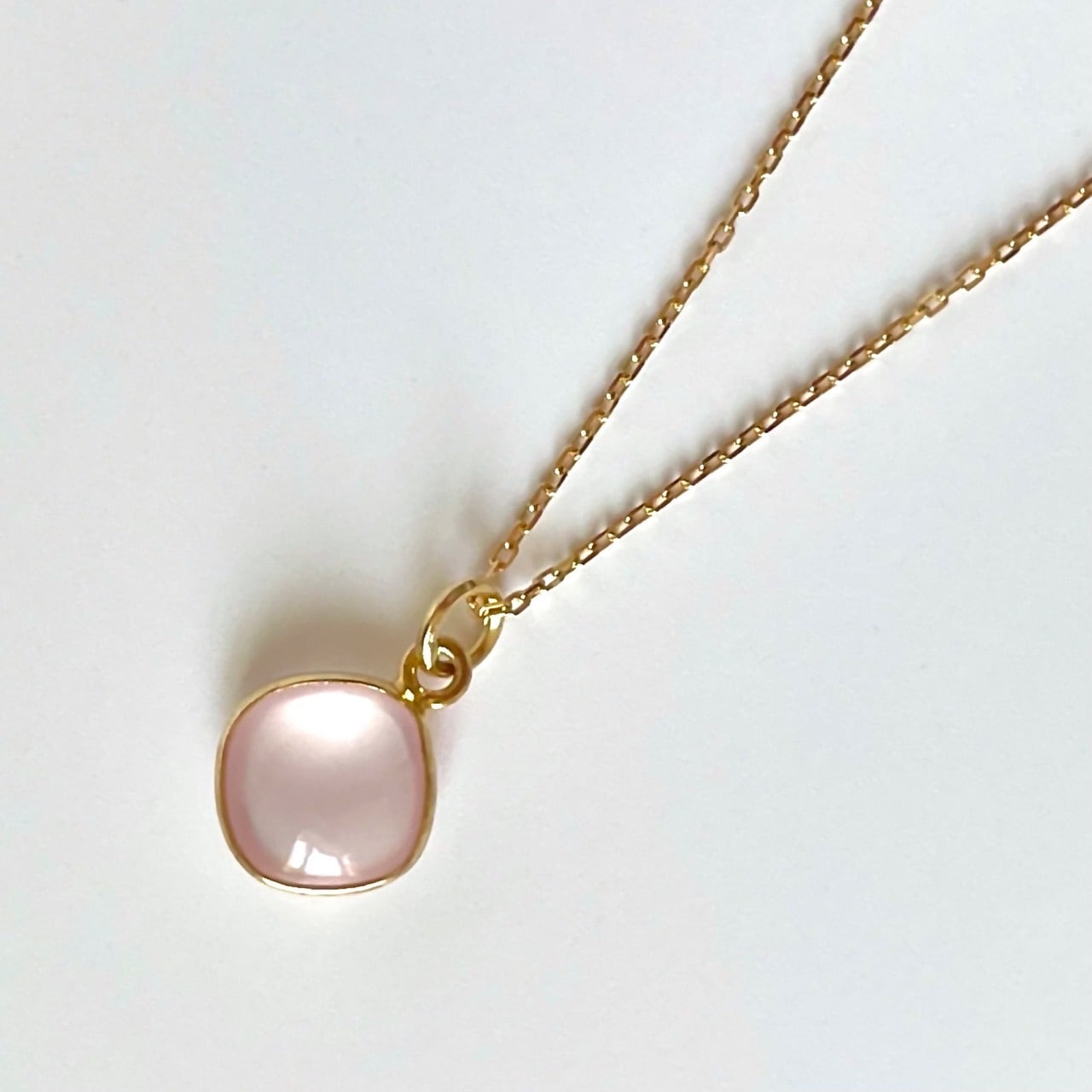 18KGP【ローズクォーツ】スクエア ネックレス / K18GP