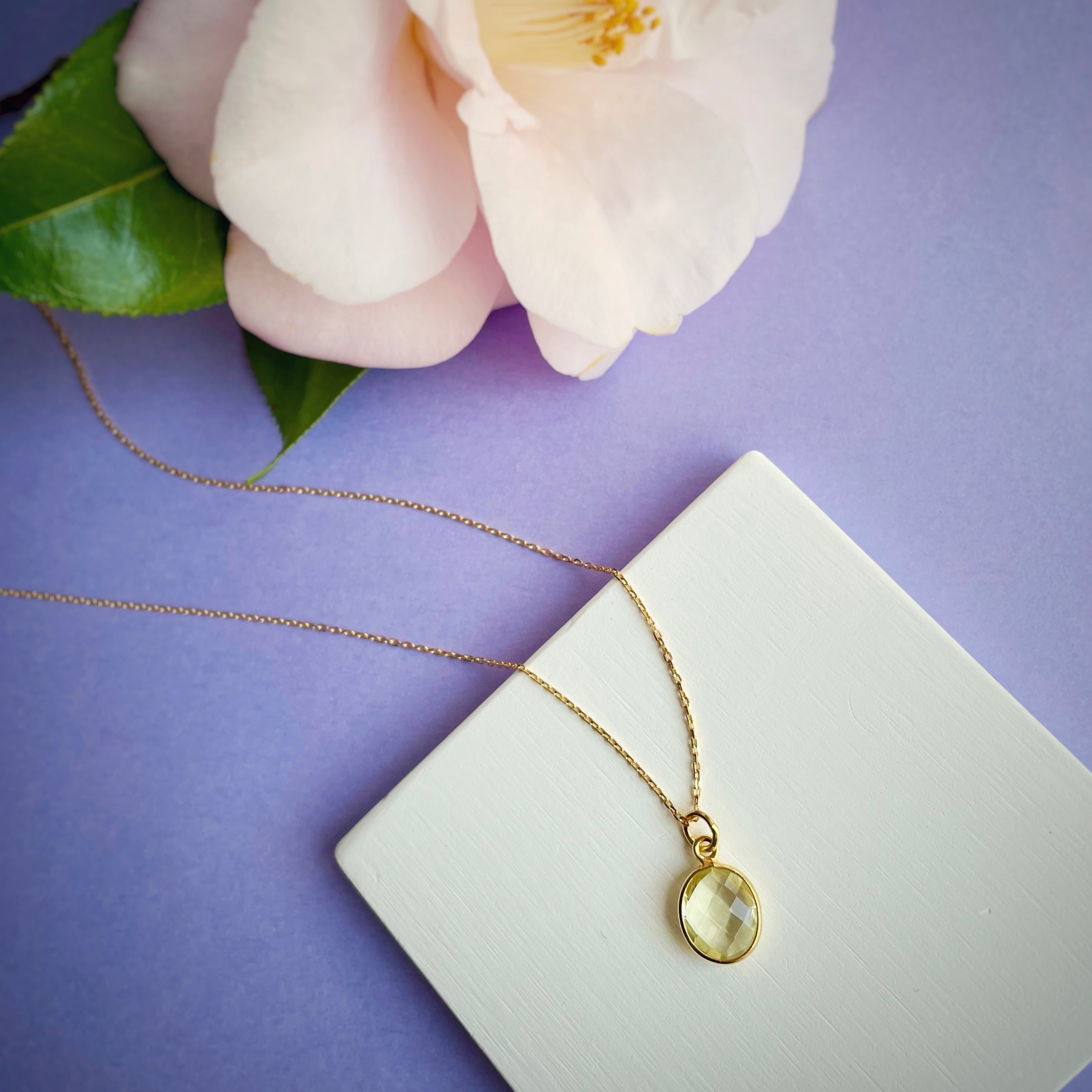 18KGP【レモンクォーツ】オーバル ネックレス