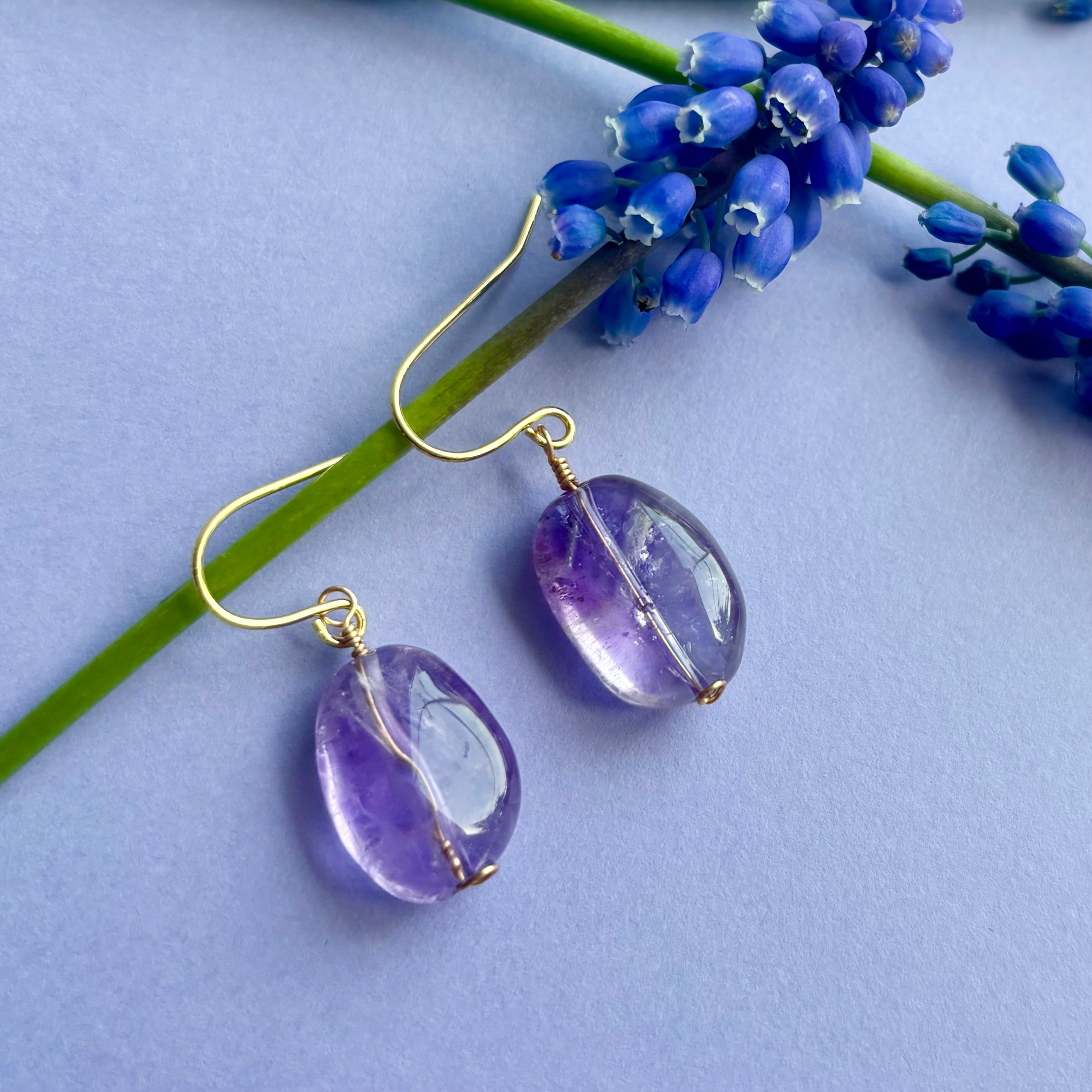 K10/14Kgf【大粒 アメジスト】タンブルカット ピアス (イヤリング変更0円) 金アレ対応